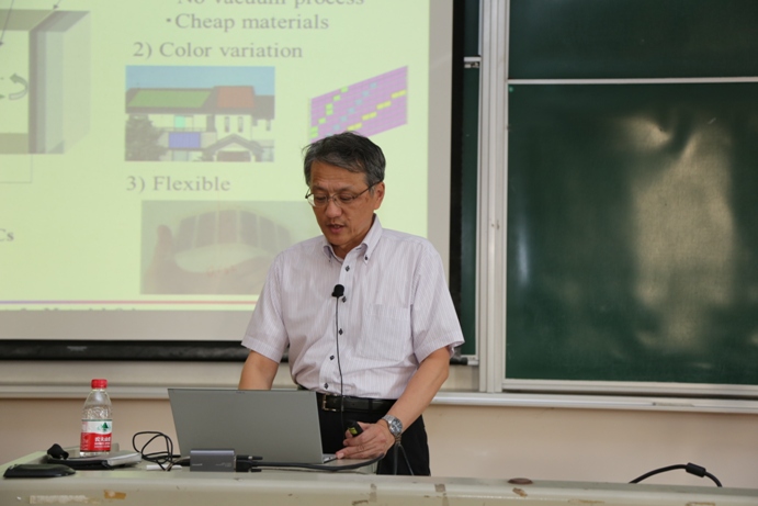 韩礼元报告指出:染料敏化太阳能电池因其具有制作工艺简单、成本低、稳定性好、理论效率高、制作和使用过程环境友好等特点,而成为新型太阳能电池研究的一个热点。它主要由二氧化钛光阳极、染料、电解质以及对电极构成,作为光伏转换器件,提高效率非常关键。报告还探讨了提高染料敏化太阳能电池转换效率的方法。报告后,韩礼元教授与重点实验室师生展开了热烈的讨论与交流。