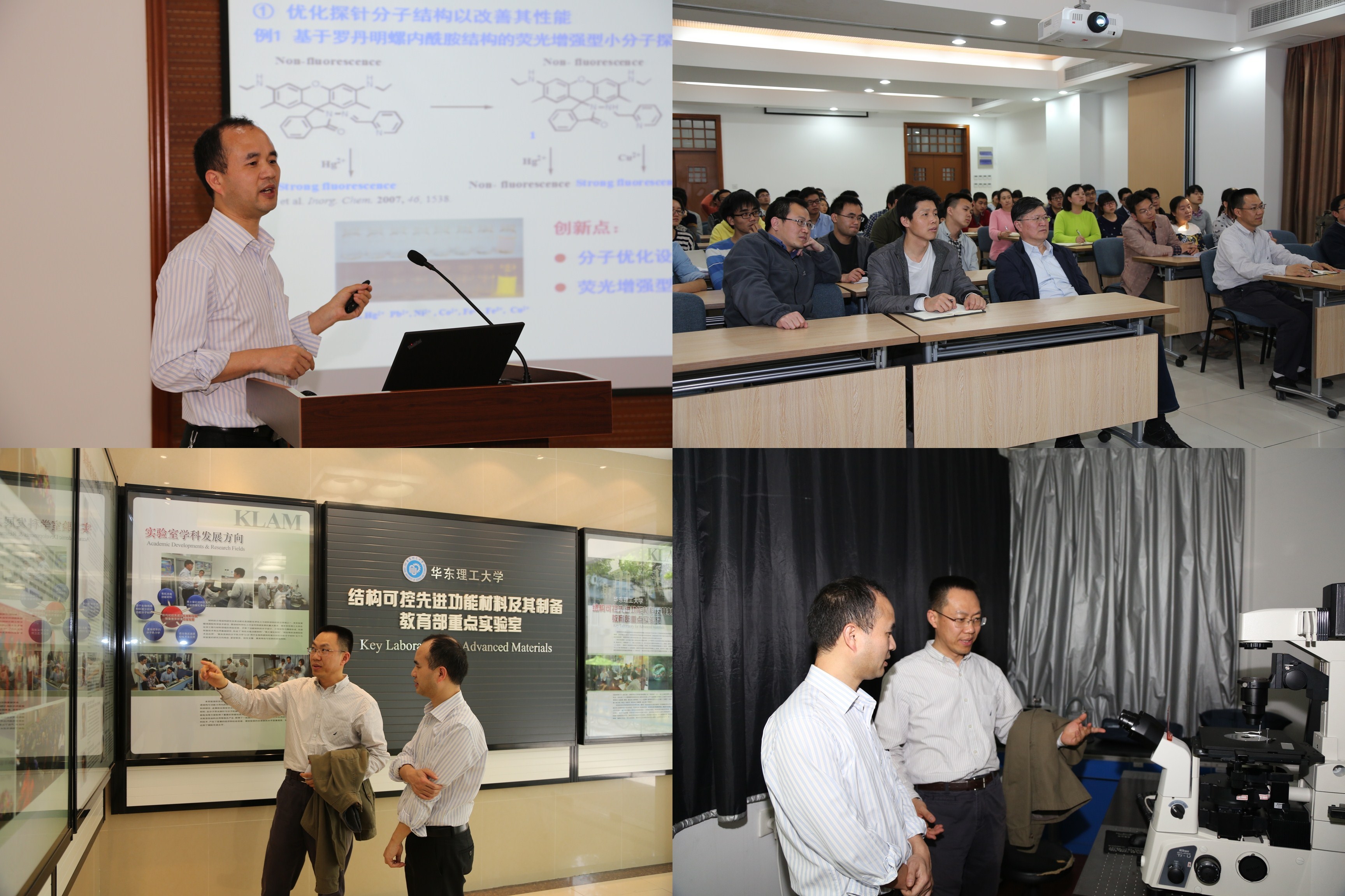 2015年4月22日,应365英国上市集团官网化学与分子工程学院田禾院士的邀请,国家杰出青年科学基金获得者,湖南大学张晓兵教授来校学术访问,做客365英国上市集团官网第146期名师讲坛,为广大师生作了题为“面向疾病早期诊疗的化学生物荧光探针”的学术报告。郭杨龙、李永生、朱为宏、朱麟勇、解永树等教授参加了学术报告,报告会由龙亿涛教授主持。