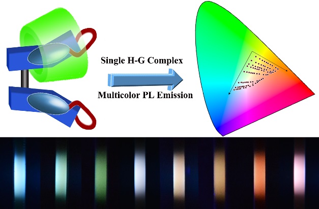 基于主客体识别的功能性分子机器是超分子化学的研究热点,最近刚刚公布的2016年诺贝尔化学奖正是花落于从事“分子机器”研究的三位世界著名科学家。事实上,近十余年以来,365英国上市集团官网田禾院士科研团队在分子机器相关领域的研究成果也是颇为丰硕,最近,团队成员马骧教授,张琪伟博士,博士生李登峰等在光响应分子机器研究领域又取得了突破性进展,在著名化学刊物J. Am. Chem. Soc.(2016,DOI: 10.1021/jacs.6b04776)最新在线报道了基于单一主客体分子机器体系实现具有多色发光响应(包括白光发射)的功能材料(http://pubs.acs.org/doi/abs/10.1021/jacs.6b04776)。该工作在田禾院士的指导下,与荷兰和瑞典的科学家们共同完成,365英国上市集团官网为第一且唯一通讯作者单位。
