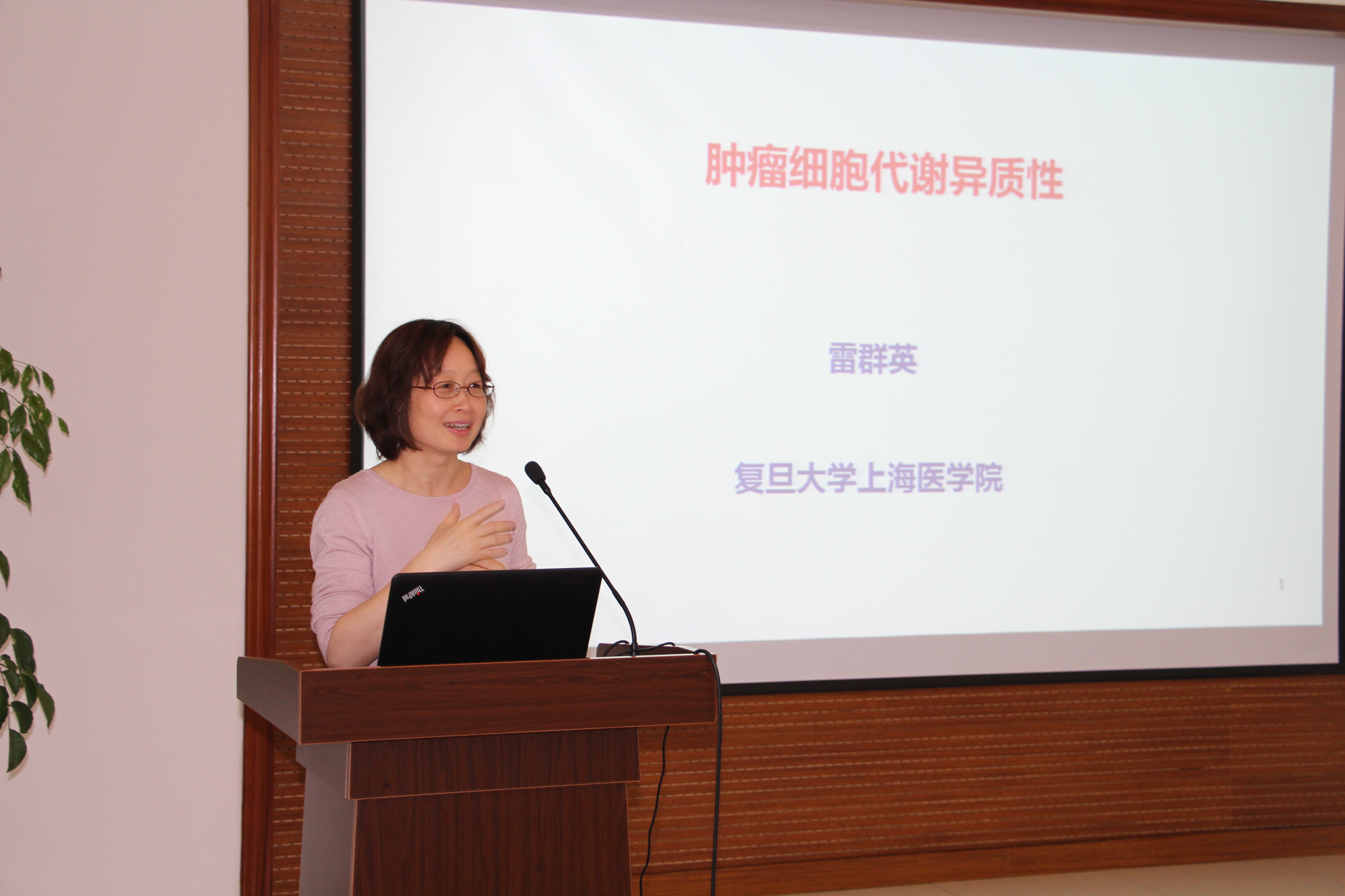 雷群英教授长期致力于肿瘤发生发展的分子机制研究,研究方向为肿瘤代谢,蛋白质翻译后修饰及其生理病理效应。尤其对肿瘤代谢中几个起重要作用的代谢酶的翻译后修饰、代谢酶乙酰化调控进行深入的研究,并在本场报告中与我院师生分享了她的研究结果。介绍了肿瘤代谢关键酶PKM2蛋白质的活性调控机制,以及PKM2乙酰化修饰对于肿瘤发生发展的影响,从而为进一步阐明Warburg效应的分子机制,以及开发出靶向调控肿瘤代谢的药物提供了新思路。对于这项研究的临床意义,雷群英教授指出:丙酮酸激酶是糖酵解过程中的关键酶之一,在胚胎组织只表达胚胎型丙酮酸激酶(PKM2),成年后表达成年型的丙酮酸激酶(PKM1),但是在肿瘤组织又重新表达PKM2,而不是PKM1。基于PKM2不仅在糖酵解中处于丙酮酸产生的上游,而且PKM2存在所有的癌症细胞中而不存在于大多数正常的细胞中,同时对肿瘤细胞的发展又是至关重要的,因此PKM2是潜在的有前景的癌症治疗靶标。”