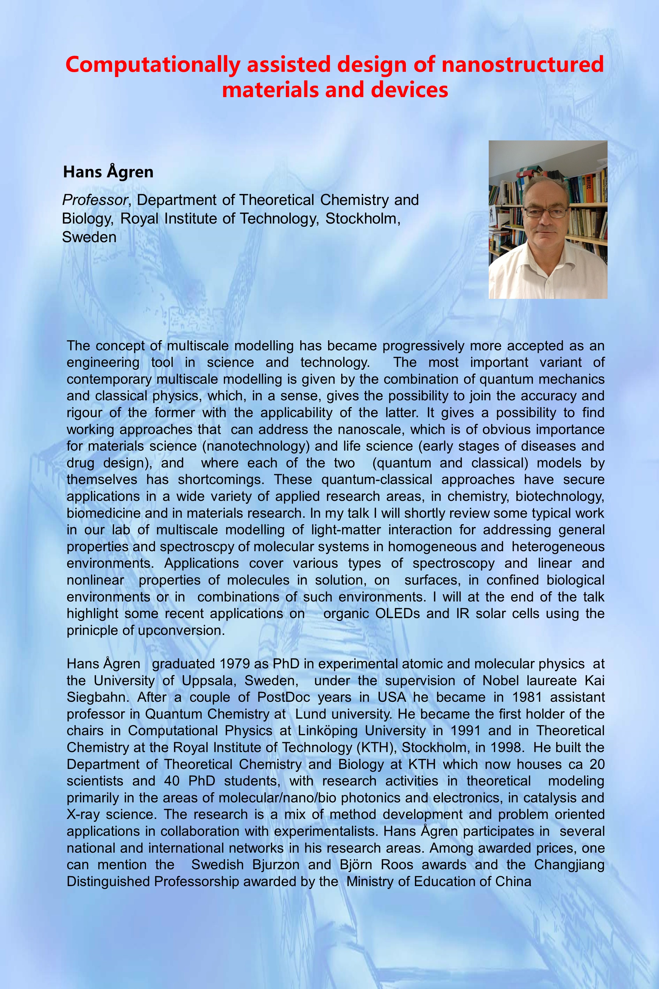 Professor, Department of Theoretical Chemistry and Biology, Royal Institute of Technology, Stockholm, Sweden