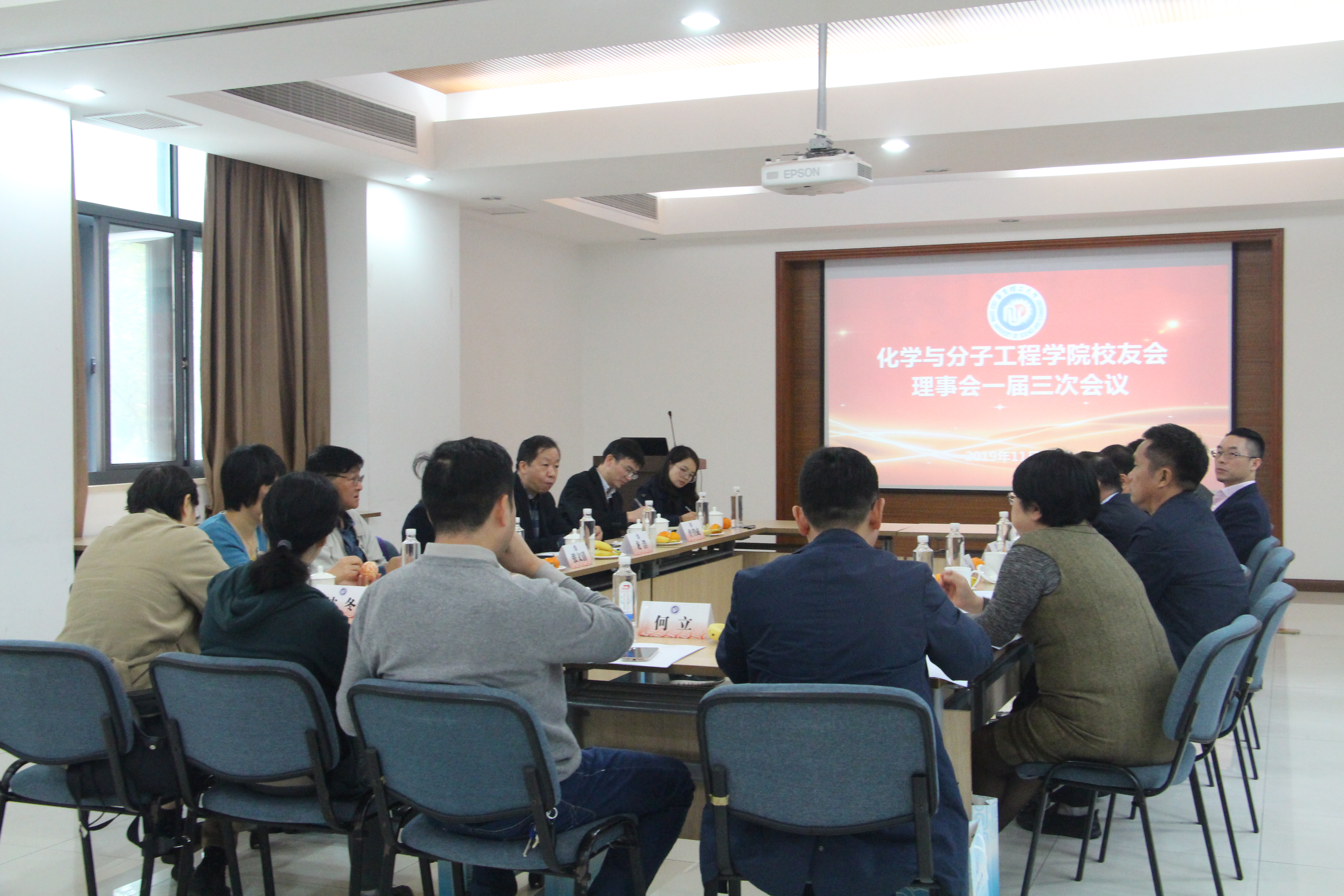 11月23日,化学与分子工程学院校友会理事会一届三次会议在徐汇校区实验三楼102会议室召开。学院校友会理事会理事长龙浩,学院党委书记、理事会副理事长张文清及各校友理事出席会议。会议由理事会秘书长、院长助理詹望成主持。