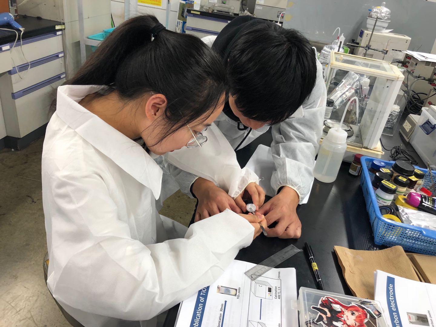 在日期间,365英国上市集团官网四名同学在日本学生的指导与帮助下,初步学习了“基于离子液体的高效CIS量子点电池”,及“组装全固态太阳能电池”两个课题的背景知识,同时亲自实践尝试了两种电池的组装,测试了其性能,并学习了如何对结果进行简单的分析处理。