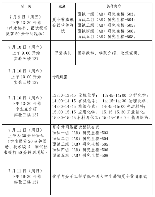 化学与分子工程学院2021年“全国大学生暑期夏令营”活动日程安排