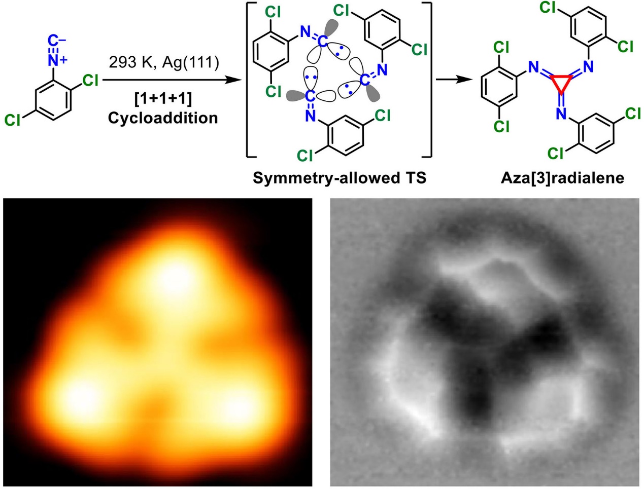 图1. 通过表面[1+1+1]环加成反应合成氮杂[3]轴烯