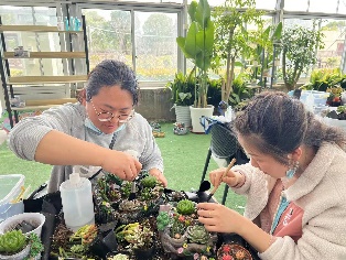3月8日中午,由化学学院工会协办的妇女节专题活动——“多肉盆景DIY”在奉贤校区花房如期进行。