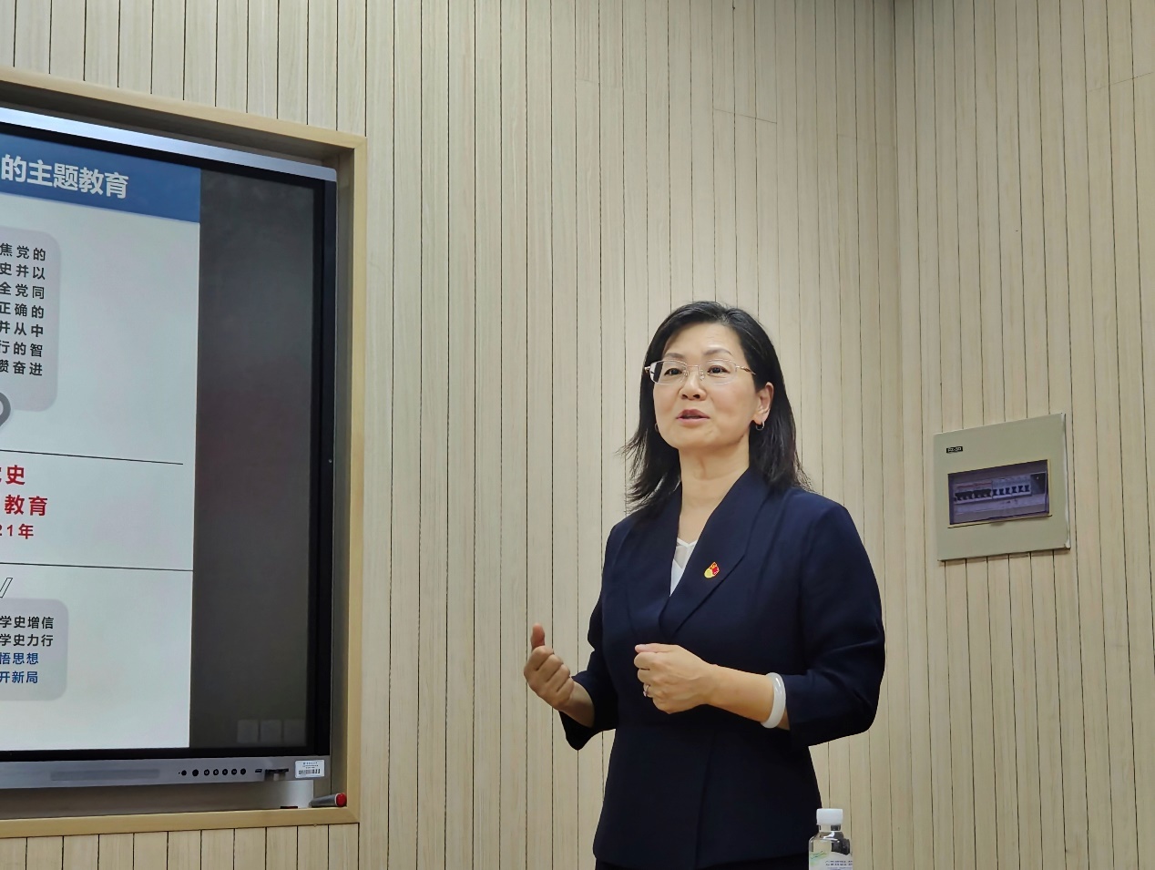 学院党委书记张文清给支部党员上“凝心聚力,做新时代的好老师”专题党课。她从“为强国建设、民族复兴新征程凝心聚力的主题教育;加强高校教师队伍建设,为现代化建设提供坚实的人才支撑;思想引领,推动学院改革发展”三个方面开展讲述,希望大家认真学习贯彻习近平新时代中国特色社会主义思想,坚持立德树人的根本任务,践行“为人师表”的初心,做有理想信念、有道德情操、有扎实学识、有仁爱之心的新时代“四有”好老师。