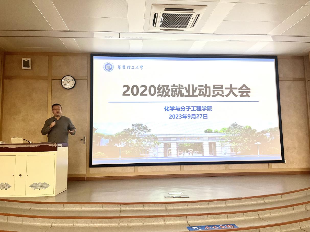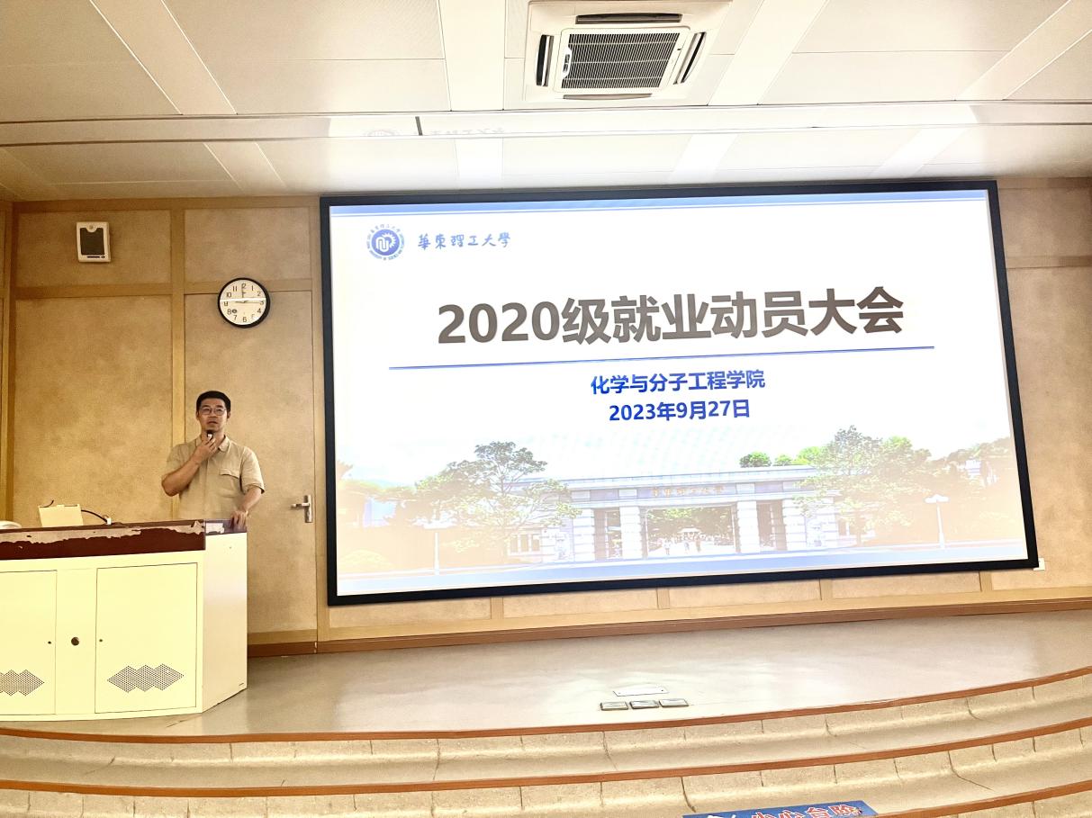 为进一步做好2024届本科毕业生的就业工作,增强学生职业规划意识,树立正确的就业观念、认清就业形势、把握就业机会,近日,化学与分子工程学院召开了2024届本科毕业生就业动员大会。大会邀请了学校就业指导服务中心副主任盖钧超、化学学院2023届优秀毕业生孙英博为同学们进行就业生涯指导和就业经验分享。化学学院党委副书记孟庆鹏及2024届本科毕业生出席了此次大会。会议由化学学院2020级本科生辅导员聂婷主持。