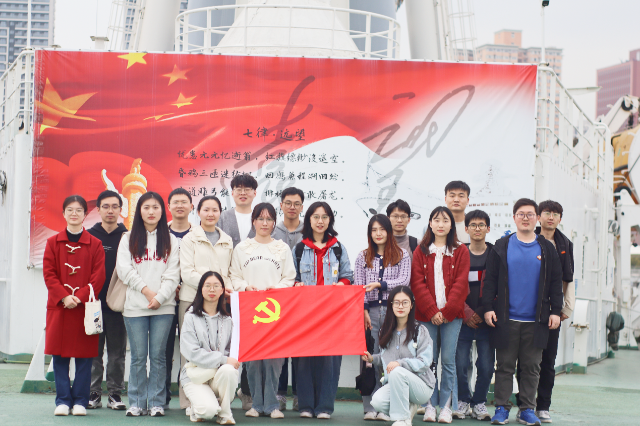 为巩固拓展学习贯彻习近平新时代中国特色社会主义思想主题教育成果,感受新中国科技事业的蓬勃发展,3月23日,化学与分子工程学院工业催化研究生第二党支部来到黄浦江畔,前往江南造船厂原2号船坞停靠的“远望一号”测量船进行参观学习。