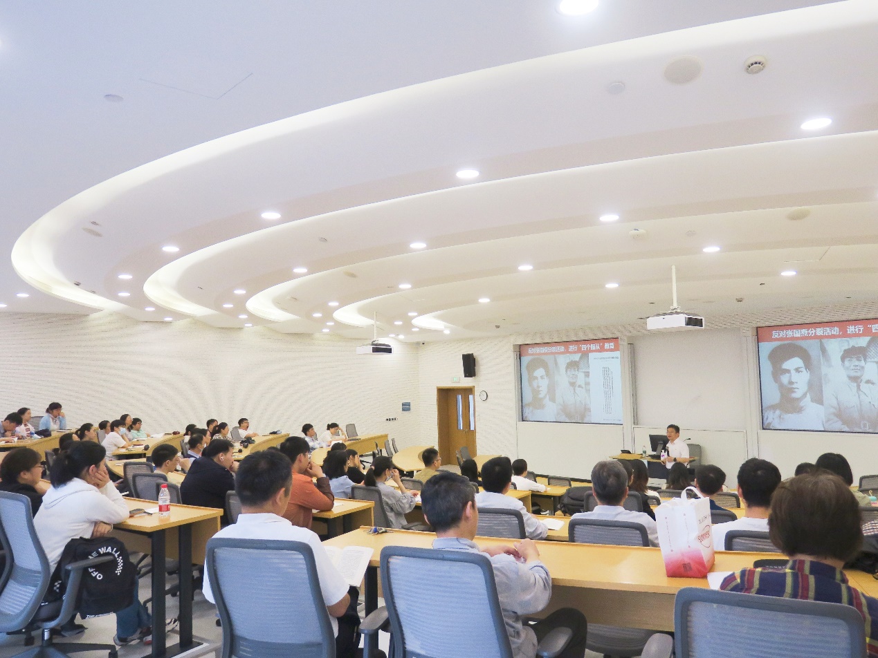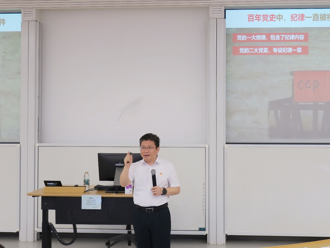 为进一步推进党纪学习教育走深走实,5月31日上午,化学与分子工程学院开展了党纪学习教育专题辅导报告会暨教职工理论学习,特邀中共上海市委党校卜新兵老师作题为“学纪知纪明纪守纪——党纪学习教育和《中国共产党纪律处分条例》学习导读”的辅导报告。学院党委委员、师生党支部书记、纪检委员、学院教职工等80余人参会。报告会由学院党委委员马海燕主持。