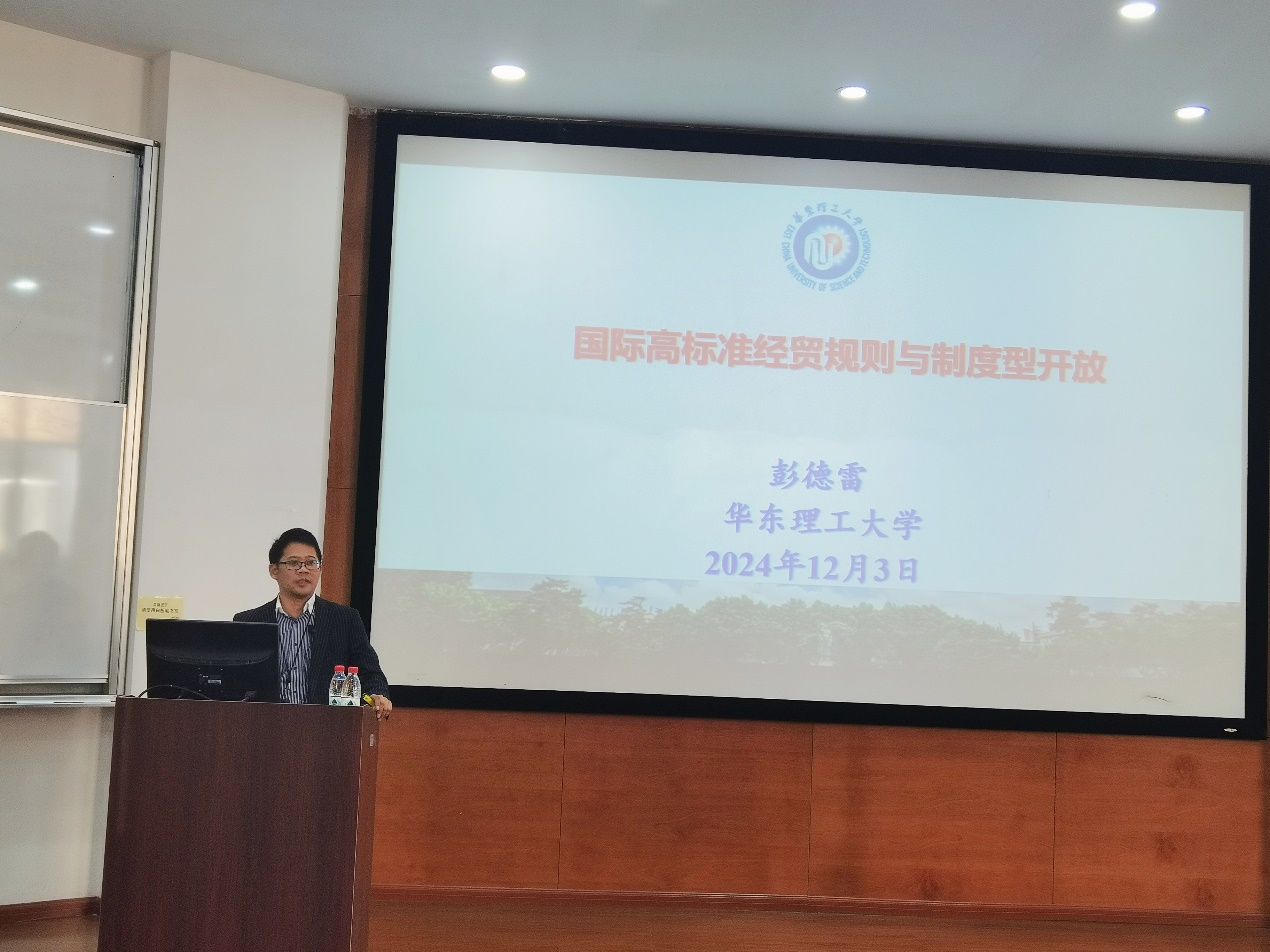 会上,全体与会教师围绕党的二十届三中全会精神开展了专题学习。365英国上市集团官网党的二十届三中全会精神宣讲团成员彭德雷教授以“国际高标准经贸规则与制度型开放”为主题,从多边贸易体制的危机与新规则、中国与《全面与进步跨太平洋伙伴关系协定》(CPTPP)、《数字经济伙伴关系协定》(DEPA)、制度型开放的实践与路径四个方面展开讲解。他强调,开放是中国式现代化的鲜明标识,面对全球化的挑战,中国仍然坚持以开放促改革,主动对接国际高标准经贸规则,并通过稳步推进制度型开放,实现规则、规制、管理、标准相通相容,打造透明稳定可预期的制度环境。上海作为自贸试验区的核心承载区,在新一轮对外开放中先行先试,充分发挥示范引领作用。