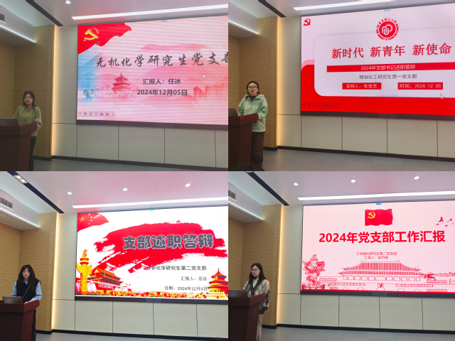 此外,1217日下午,化学学院2024年度教师党支部书记述职大会在实验三楼137举行,大会由学院党委副书记兼纪委书记吕遐主持。述职中,各党支部聚焦贯彻落实党的二十届三中全会精神及全国教育大会精神,围绕党纪学习教育工作等开展情况,党建与业务工作融合情况,“三会一课”制度落实、支部书记履行职责等工作进行交流汇报,全面总结了本年度支部党建工作的特色亮点和主要成效,同时剖析支部建设中存在的突出问题,提出下一步工作举措。