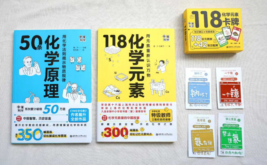 同时,戴升教授积极开展化学类科普教育探索,原创“本土化”的“画懂科学”系列科普作品:《118化学元素》、《50条化学原理》、《118化学元素卡牌》,等,创下单类销量超50万册的佳绩;科普成果多次获得学习强国、新华社、光明日报、东方卫视等权威媒体的专题报道。