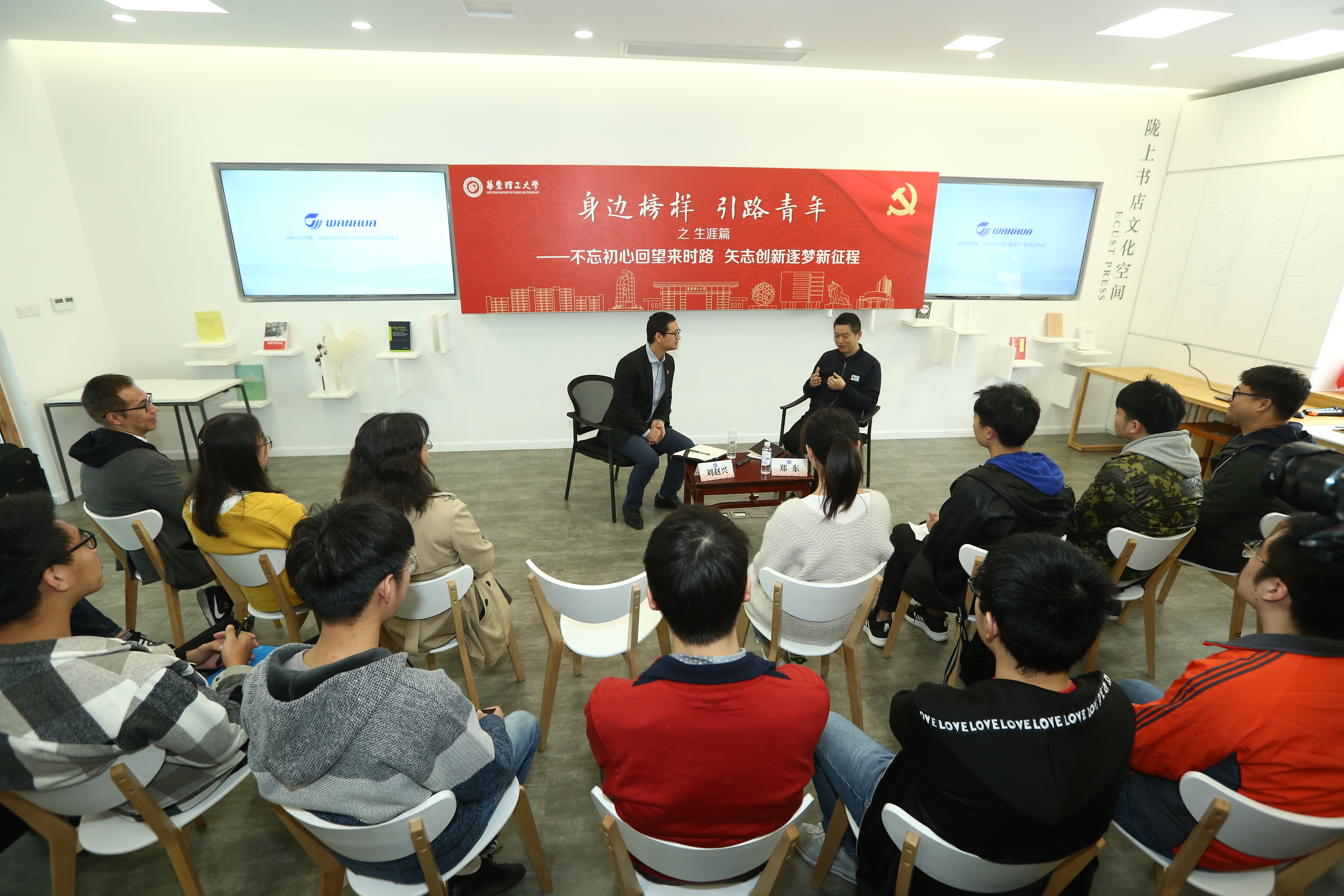 刘赵兴在华理读完本科和博士后,响应国家科技创新的号召,赴烟台万华化学公司开展工作和研究,他先后担任万华中央研究院研究员和项目组长,并在功能化学品事业部担任副经理和销售总监等职。由于出色的工作能力和突出的科研水平,刘赵兴曾受到习近平总书记的接见和主流媒体的采访。 此次活动由孟庆鹏主持,郑东访谈。张文清对嘉宾、教师和学生党员的到来表示欢迎,并简要介绍了主讲嘉宾。访谈环节主要围绕刘赵兴在化学学院就读期间的人生选择和生涯规划、一名共产党员的初心、追逐梦想过程中遇到的挫折和挑战以及如何化危为机逆境成长等展开。访谈还涉及企业创新能力和关键核心技术的重要性以及寄语学弟学妹的职业选择和成长成才等。 刘赵兴深入浅出、生动形象的讲述,给参加活动的党员留下了深刻的印象,激发了他们对初心与使命的进一步思索。访谈结束后,同学们纷纷就自身面临的职业选择和生涯发展等问题进行了提问,刘赵兴结合自身的职业经历和人生经验一一作了耐心解答。刘赵兴的精彩讲述和分享,对激发学生党员在学习和工作中勇于创新、勇担民族发展和复兴大任等大有助益。他是当之无愧的身边榜样和引路青年。