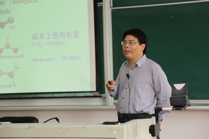 王献红在报告中介绍:大气中二氧化碳含量高达27500亿吨,每年在碳循环中的二氧化碳约6600亿吨,但每年因人类活动和森林退化额外产生257亿吨二氧化碳,这些未平衡的二氧化碳约占碳循环的3.9%,导致大气中二氧化碳的浓度从工业化前的270ppm到目前的380ppm,并作为主要温室气体引发了日益变化无常的气候问题,因此二氧化碳已经成为世界范围最受关注的环境问题。王献红研究员以“二氧化碳固定为高分子材料”为题,详细介绍了二氧化碳基生物降解塑料和聚氨酯研发概况及应用前景。王献红认为,可以二氧化碳为高分子工业原料,制备合适的生态材料,特别是二氧化碳基塑料和聚氨酯。同时指出,催化剂开发依然是研发过程的基石,金属有机化学则是高分子合成化学研究中的核心知识。