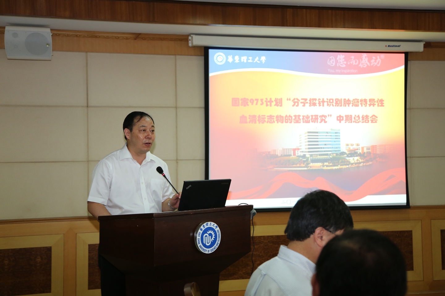 August 15th, the mid-term review conference of the National 973 Project, "Basic research of molecular probes to identify tumor-specific serum markers", chaired by Prof. Tian He was held in our university. National 973 Program Advisory Group Experts: Prof. Zhang Yukui (Academican, Dalian Institute of Chemical Physics, Chinese Academy of Sciences), Prof. Chen Siping (Shenzhen University); Project Peer Experts: Prof. Chen Xiaoming (Academican, Sun Yat-sen University), Prof. Xie Yi (Academican, University of Science and Technology of China), Prof. Ding Kuiling (Academican, Director of Shanghai Institute of Organic Chemistry, Chinese Academy of Sciences), Prof. Liu Maili (Director of Wuhan Institute of Physics and Mathematics, Chinese Academy of Sciences), Prof. Jiang Hualiang (Director of Shanghai Institute of Materia Medica, Chinese Academy of Sciences, Chinese Academy of Sciences), Prof. Tong Zhen (South China University of Technology), Prof. Yu Jihong (Jilin University), Prof. Zhai Hongbin (Lanzhou University) and other more than 30 experts, project leaders and academic backbones from Peking University, Fudan University, Dalian University of Technology, Chinese Academy of Sciences Institute of Chemistry, East China University of Science and Technology attended the meeting.