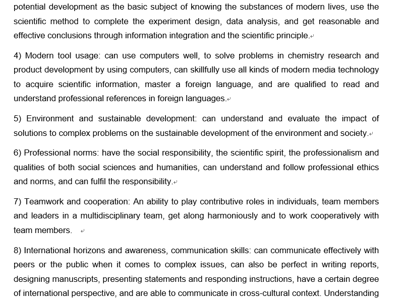 | The use of modern tools | Environment and sustainable development | Professional norms | Individuals and team | Communication skill | Life-long learning |