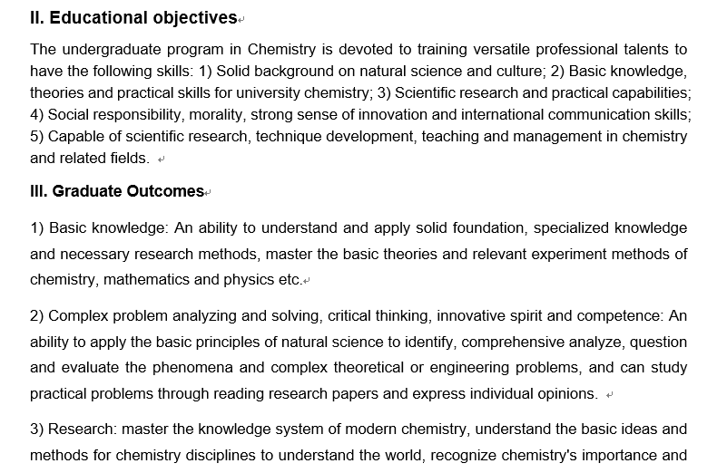 The Correspondence Matrix betweenGraduate Outcomes and Compulsory Courses for the Undergraduate Program in Chemistry